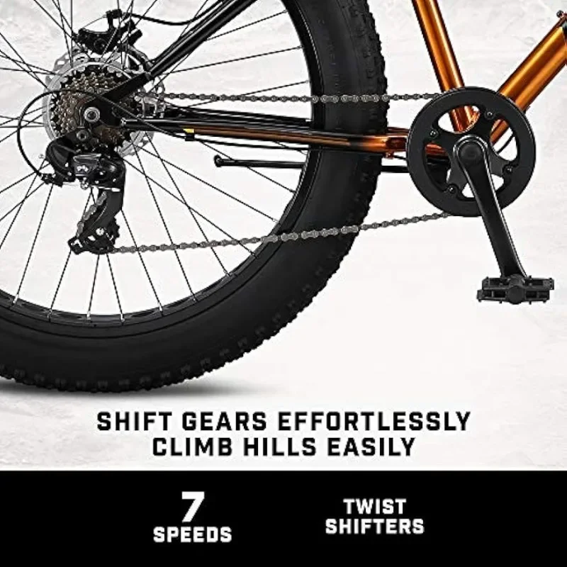 Malus Mens and Women Fat Tire Mountain Bike, 26-Inch Bicycle Wheels, 4-Inch Wide Knobby Tires, Steel Frame